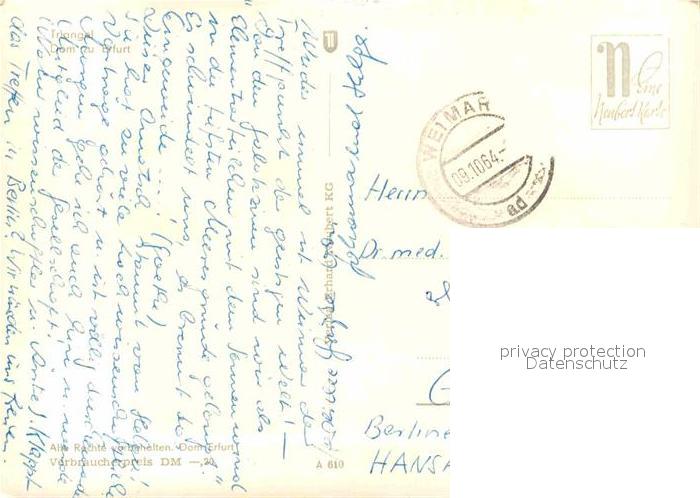 72704809 alte Postkarte ERFURT CITY Triangel Dom postalisch gelaufen Erhaltung siehe scans [AndreD76] KatCode: 11110016051000