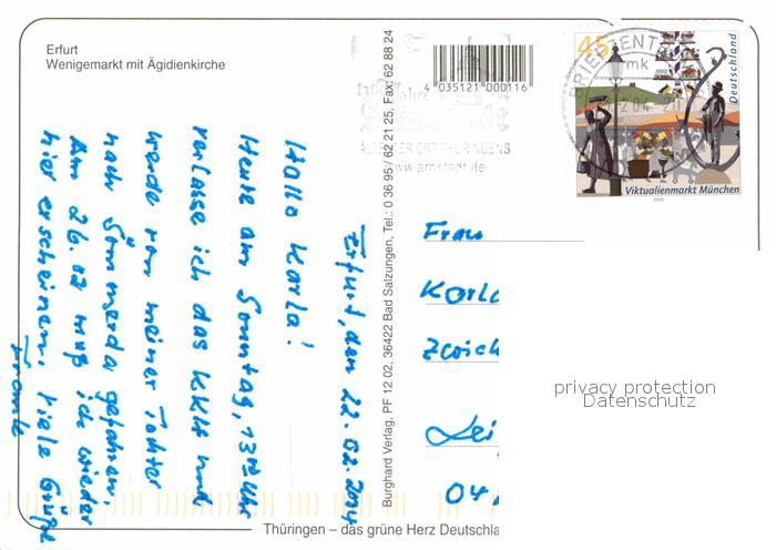 72615482 alte Postkarte ERFURT CITY Wenigemarkt mit aegidienkirche postalisch gelaufen Erhaltung siehe scans [WerneD78] KatCode: 11110016051000