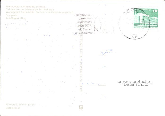 72337000 alte Postkarte ERFURT CITY Wohngebiet Riethstrasse Zentrum Rat des Kreises Statthalterei Brunnen Domplatz Juri Gagarin Ring postalisch gelaufen Erhaltung siehe scans KatCode: 11110016051000