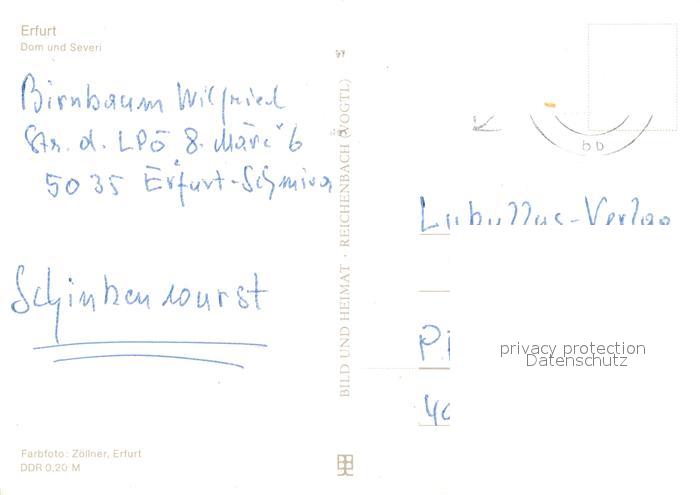 72929800 alte Postkarte Erfurt Dom und Severi postalisch gelaufen Erhaltung siehe scans [WerneD78] KatCode: 11110016051000