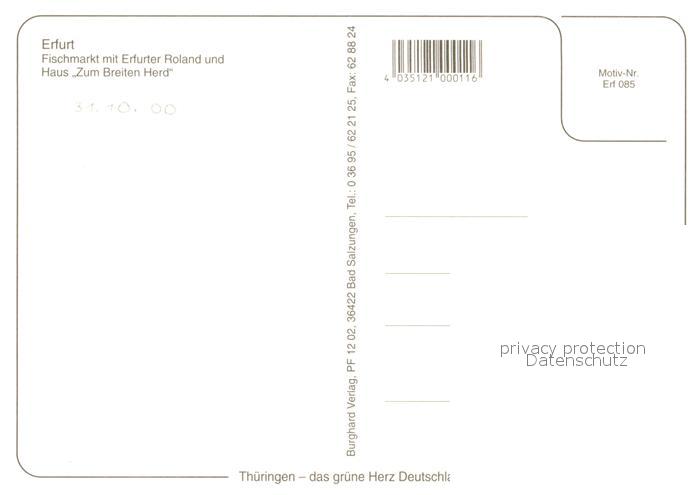 73259332 Erfurt Fischmarkt Erfurter Roland Haus Zum Breiten Herd postalisch nicht gelaufen Erhaltung siehe scans [NatalD47] KatCode: 11110016051000