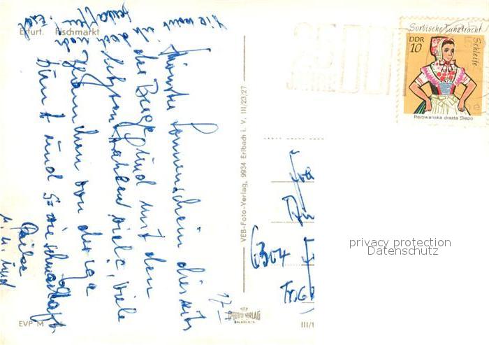 73093917 alte Postkarte Erfurt Fischmarkt Wartburg W311 postalisch gelaufen Erhaltung siehe scans [KathaD81] KatCode: 11110016051000