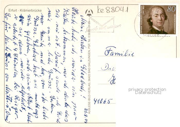 73544506 alte Postkarte Erfurt Fliegeraufnahme Kr?merbr?cke postalisch gelaufen Erhaltung siehe scans [LiesaD40] KatCode: 11110016051000