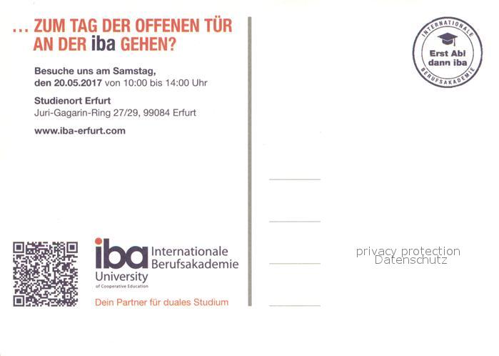 73572157 Erfurt iba Internationale Berufsakademie Tag der offenen Tuer postalisch nicht gelaufen Erhaltung siehe scans [FriedD77] KatCode: 11110016051000