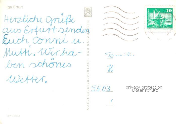 73073605 alte Postkarte Erfurt IGA postalisch gelaufen Erhaltung siehe scans [WerneD78] KatCode: 11110016051000