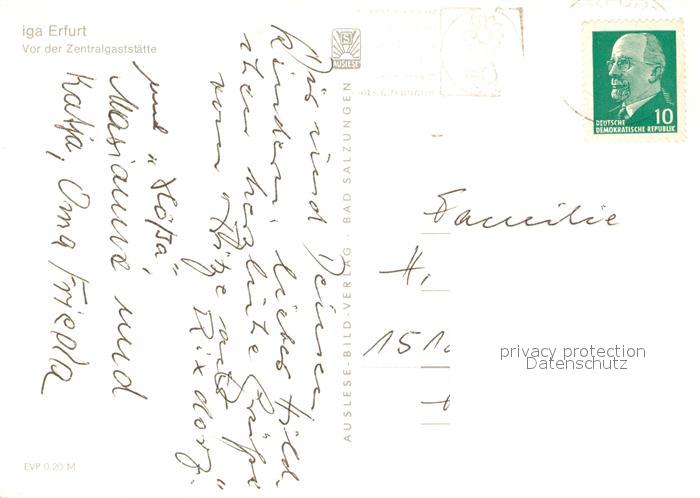 73097945 alte Postkarte Erfurt IGA Zentralgaststaette postalisch gelaufen Erhaltung siehe scans [WerneD78] KatCode: 11110016051000