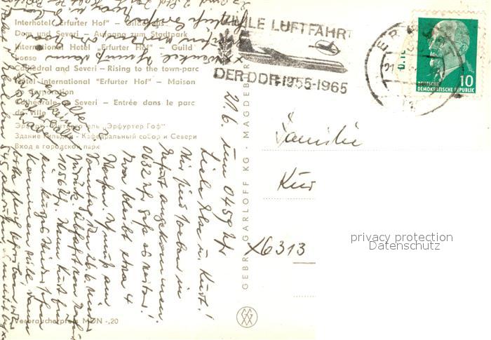 73031235 alte Postkarte Erfurt Interhotel Erfurter Hof Dom Severi Stadtpark postalisch gelaufen Erhaltung siehe scans [KathaD81] KatCode: 11110016051000