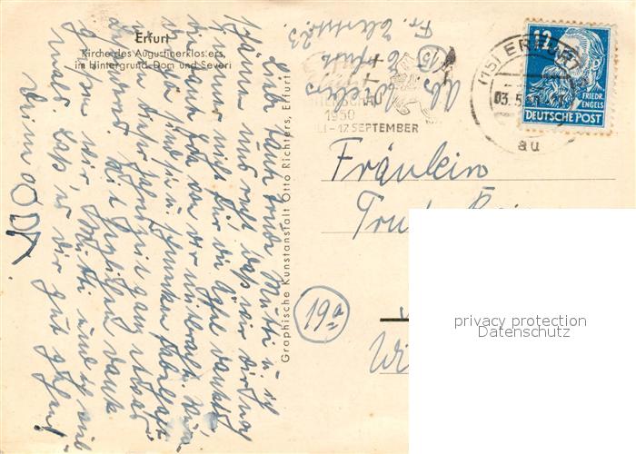 73029700 alte Postkarte Erfurt Kirche des Augustinerklosters mit Dom und Severi postalisch gelaufen Erhaltung siehe scans [WerneD78] KatCode: 11110016051000