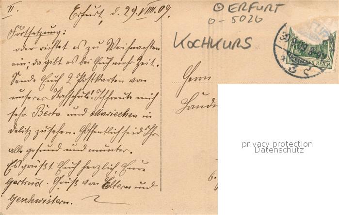 33277283 alte Postkarte Erfurt Kochkurs postalisch gelaufen Erhaltung siehe scans [NatalD47] KatCode: 11110016051000