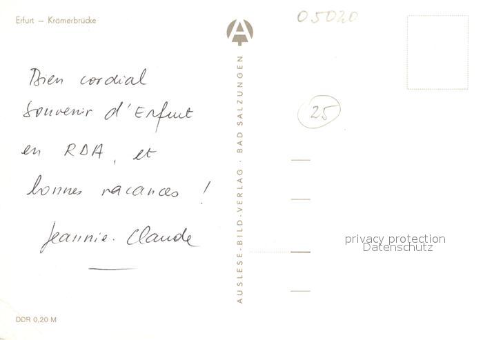 73059164 Erfurt Kraemerbruecke postalisch nicht gelaufen Erhaltung siehe scans [WerneD78] KatCode: 11110016051000