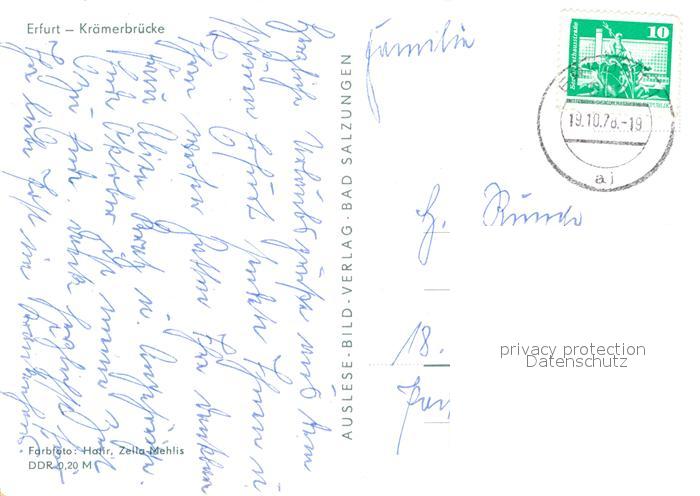 72987984 alte Postkarte Erfurt Kraemerbruecke postalisch gelaufen Erhaltung siehe scans [FriedD77] KatCode: 11110016051000