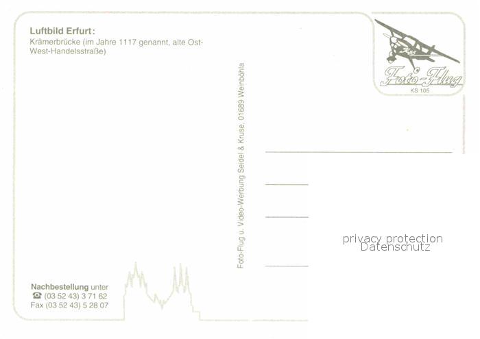 72904441 Erfurt Kraemerbruecke Fliegeraufnahme postalisch nicht gelaufen Erhaltung siehe scans [LiesaD40] KatCode: 11110016051000