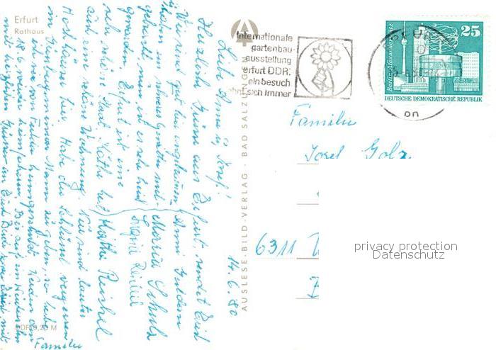 73226949 alte Postkarte Erfurt Rathaus postalisch gelaufen Erhaltung siehe scans [FriedD77] KatCode: 11110016051000