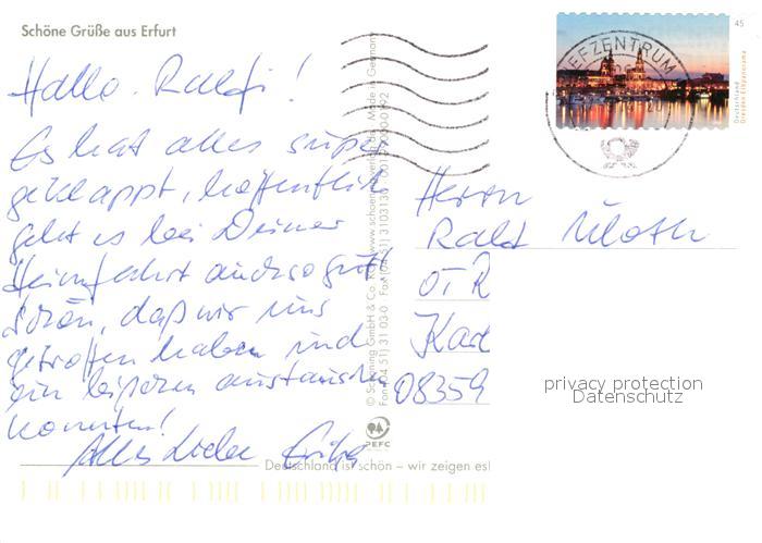 72972595 alte Postkarte Erfurt Rathaus Kirche Platz Schloss Dom postalisch gelaufen Erhaltung siehe scans [FriedD77] KatCode: 11110016051000