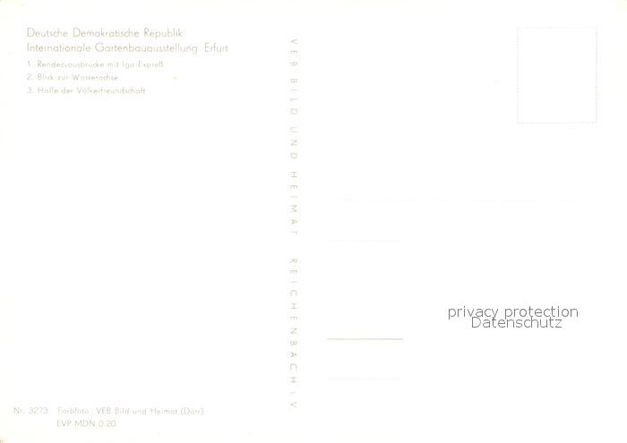 72947381 Erfurt Rendezvousbruecke mit IGA Express Wasserachse Halle der Voelkerfreundschaft postalisch nicht gelaufen Erhaltung siehe scans [WerneD78] KatCode: 11110016051000