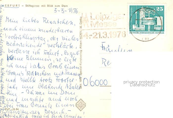 73030431 alte Postkarte Erfurt Stiftsgasse mit Domblick postalisch gelaufen Erhaltung siehe scans [WerneD78] KatCode: 11110016051000