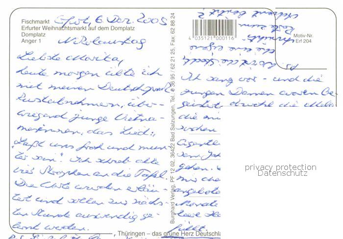72870397 Erfurt Weihnachtsmarkt auf Domplatz postalisch nicht gelaufen Erhaltung siehe scans [LiesaD40] KatCode: 11110016051000