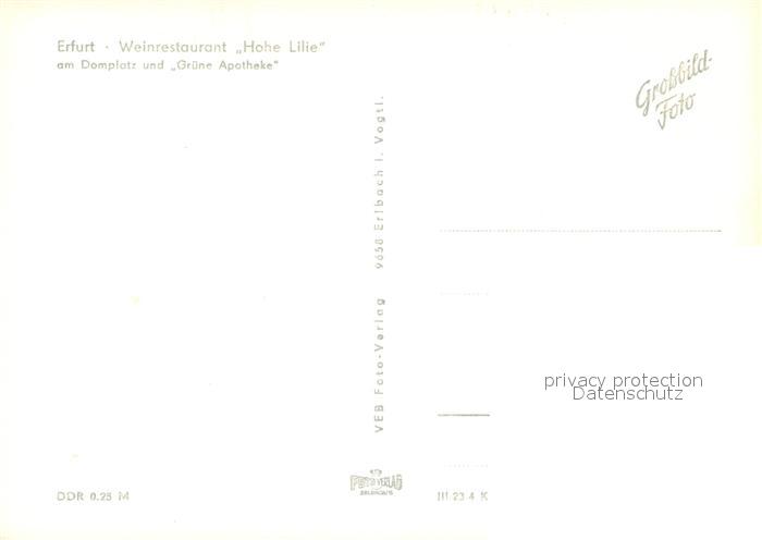 73073613 Erfurt Weinrestaurant Hohe Lilie Domplatz Gruene Apotheke postalisch nicht gelaufen Erhaltung siehe scans [WerneD78] KatCode: 11110016051000
