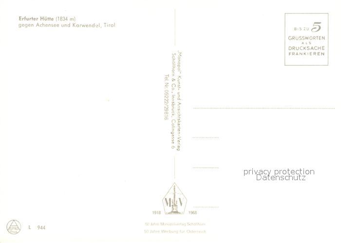 73260027 Erfurterhuette Achensee Karwendel postalisch nicht gelaufen Erhaltung siehe scans [NatalD47] KatCode: 11390335070907