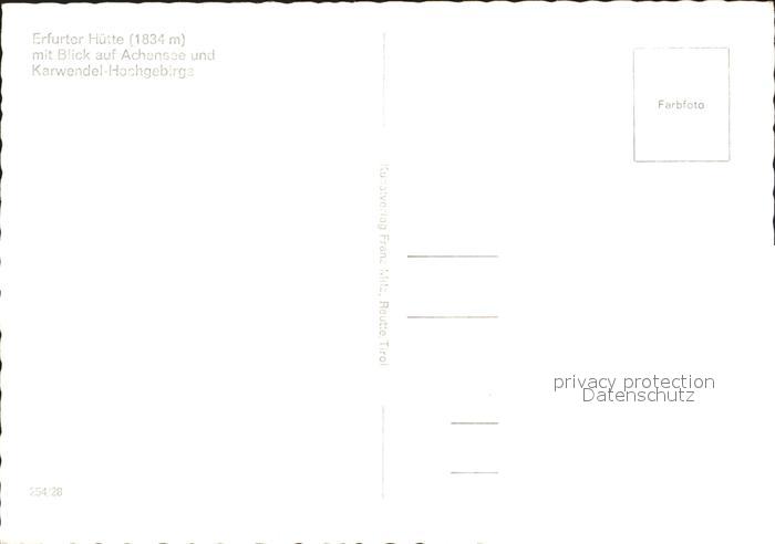 72236955 Erfurterhuette Achensee Karwendel-Hochgebirge postalisch nicht gelaufen Erhaltung siehe scans KatCode: 11390335070907