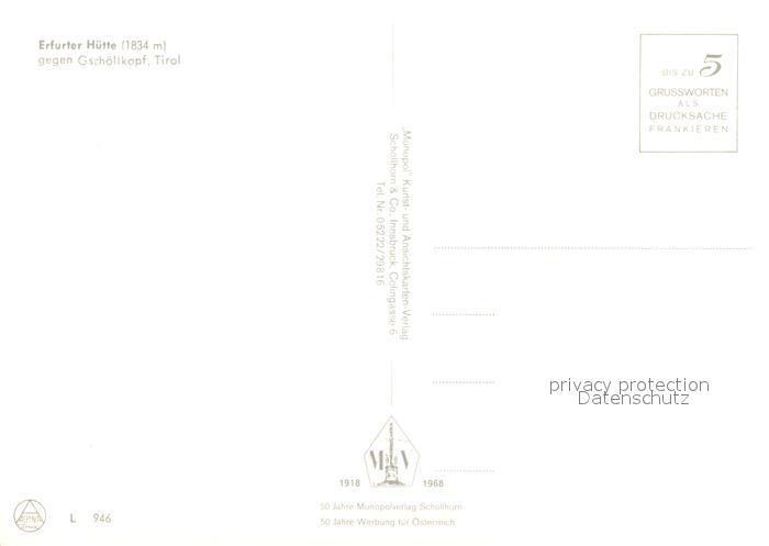 73233501 Erfurterhuette gegen Gschoellkopf Rofangebirge postalisch nicht gelaufen Erhaltung siehe scans [FriedD77] KatCode: 11390335070907