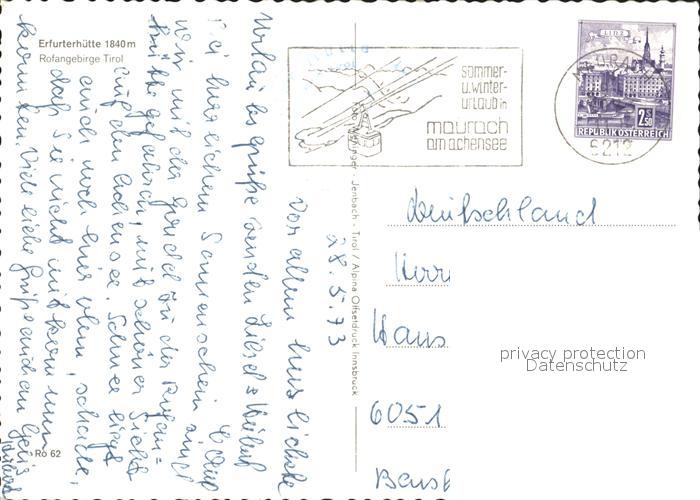 72207613 alte Postkarte Erfurterhuette mit Rotspitze postalisch gelaufen Erhaltung siehe scans KatCode: 11390335070907