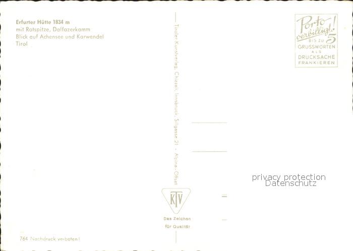 72549170 Erfurterhuette mit Rotspitze Achensee Karwendel postalisch nicht gelaufen Erhaltung siehe scans [LiesaD40 kv021box] KatCode: 11390335070907