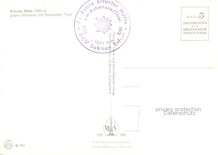 73070797 Erfurterhuette Panorama Blick gegen Achensee und Karwendel postalisch nicht gelaufen Erhaltung siehe scans [FriedD77] KatCode: 11390335070907