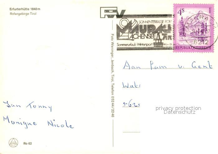 73066249 alte Postkarte Erfurterhuette Rofangebirge Rotspitze postalisch gelaufen Erhaltung siehe scans [NatalD47] KatCode: 11390335070907