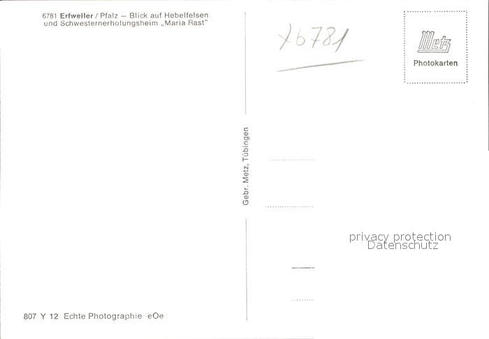41793364 Erfweiler Pfalz Blick Hebelfelsen Schwesternerholungsheim Maria Rast postalisch nicht gelaufen Erhaltung siehe scans KatCode: 11110007340009