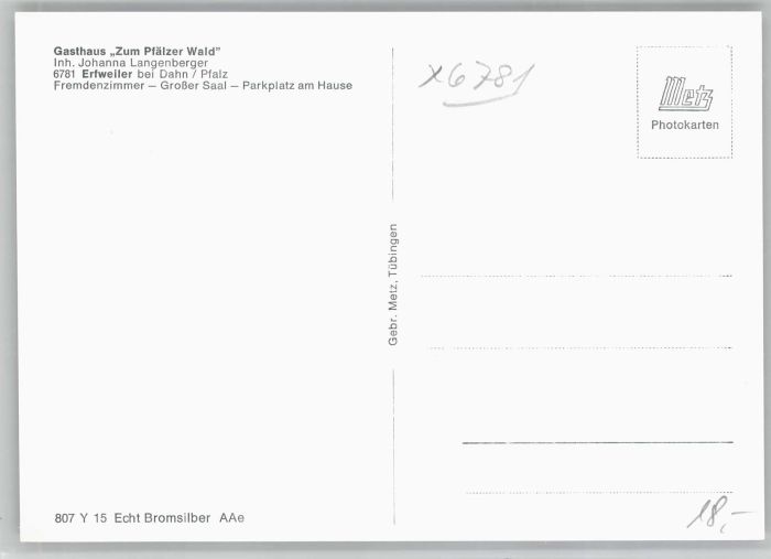 40702669 Erfweiler Pfalz Erfweiler Gasthaus zum Pfälzer Wald Gastraum Saal KatCode 11110007340009
