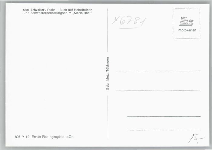 40702670 Erfweiler Pfalz Erfweiler Hebelfelsen Schwesternerholungsheim Maria Rast KatCode 11110007340009