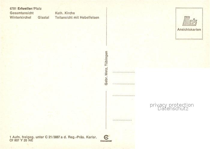73240231 Erfweiler Pfalz Winterkirchel Glastal Katholische Kirche Hebelfelsen postalisch nicht gelaufen Erhaltung siehe scans [KathaD81] KatCode: 11110007340009