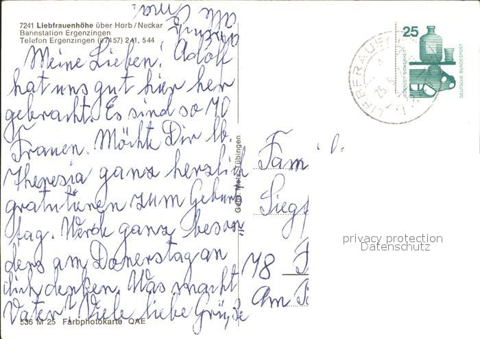 71988068 alte Postkarte Ergenzingen Liebfrauenhoehe ueber Horb postalisch gelaufen Erhaltung siehe scans KatCode: 11110008416036