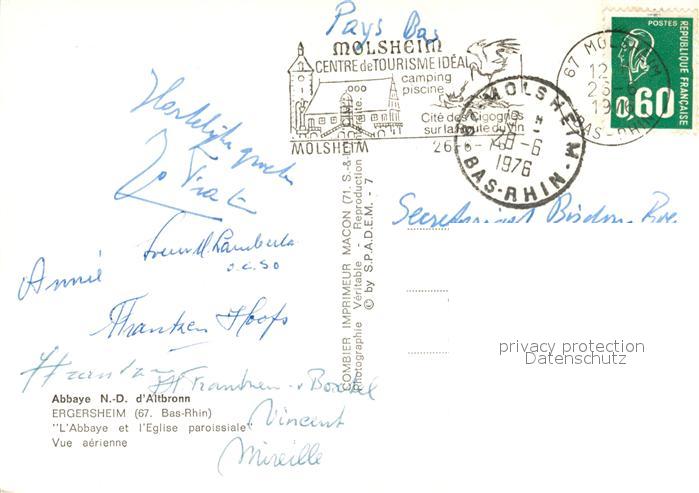 13218397 carte postale Ergersheim Bas-Rhin Abbaye Eglise paroissiale vue aérienne postalisch gelaufen Erhaltung siehe scans [FriedD77] KatCode: 11170067367127