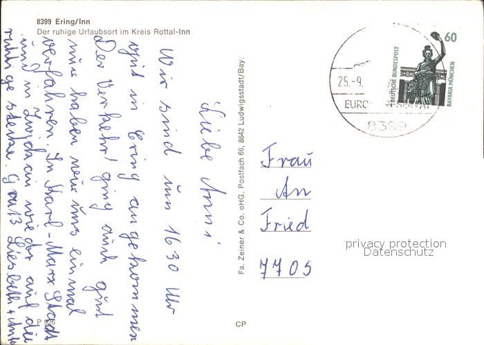 72012211 alte Postkarte Ering Teilansichten Kirche Werk Schwimmbad postalisch gelaufen Erhaltung siehe scans KatCode: 11110009277118