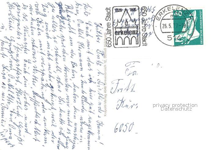 73264537 alte Postkarte Erkelenz Burg Stadthalle Ziegelweiher Rathaus St. Lambertus postalisch gelaufen Erhaltung siehe scans [PaolaD17] KatCode: 11110005370004