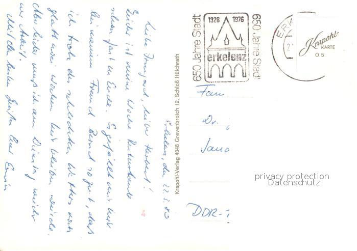 73673260 alte Postkarte Erkelenz Dr. Eberle Platz Markt Kirche Burg Rathaus Stadthalle Ziegelweiher Fontaene postalisch gelaufen Erhaltung siehe scans [FriedD77] KatCode: 11110005370004