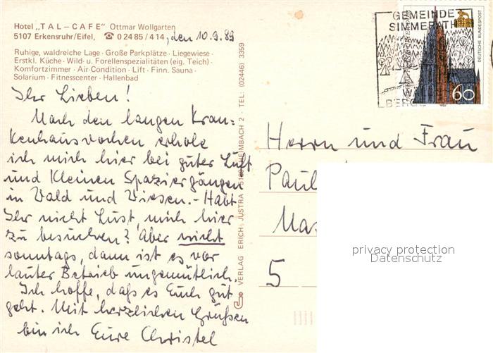 73203355 alte Postkarte Erkensruhr Hotel Tal-Cafe postalisch gelaufen Erhaltung siehe scans [NatalD47] KatCode: 11110005354028