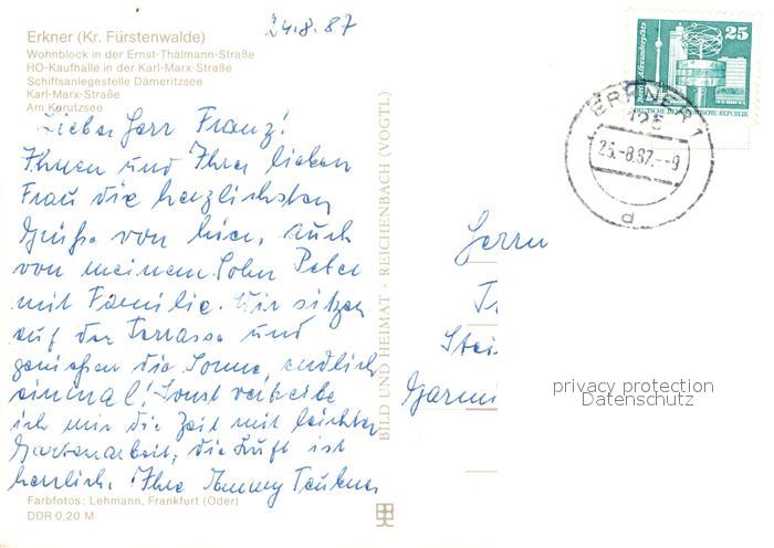 73023951 alte Postkarte Erkner HO Kaufhalle Karl Marx Strasse postalisch gelaufen Erhaltung siehe scans [KathaD81] KatCode: 11110012067124