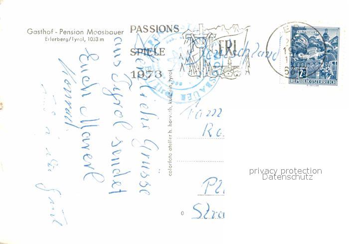 72673330 alte Postkarte Erl Tirol Gasthof Pension Moosbauer am Erlerberg postalisch gelaufen Erhaltung siehe scans [FriedD77] KatCode: 11390335070510