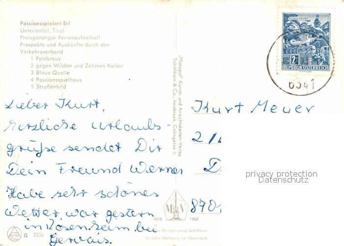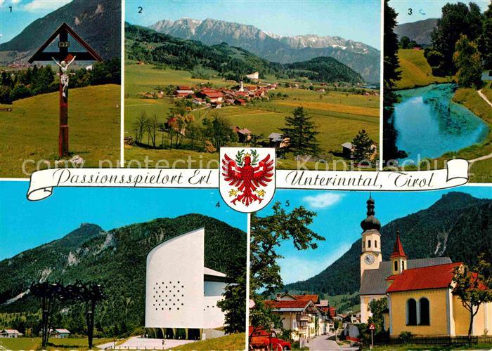 72839952 alte Postkarte Erl Tirol Passionsspielort Unterinntal Feldkreuz Wilder- und Zahmer Kaiser Passionsspielhaus postalisch gelaufen Erhaltung siehe scans [LiesaD40] KatCode: 11390335070510