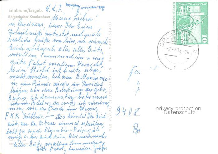 72382745 alte Postkarte Erlabrunn Erzgebirge Bergarbeiter-Krankenhaus postalisch gelaufen Erhaltung siehe scans KatCode: 11110014191090