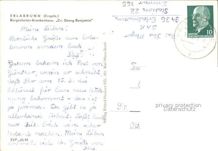 71903319 alte Postkarte Erlabrunn Erzgebirge Bergarbeiter Krankenhaus postalisch gelaufen KatCode: 11110014191090