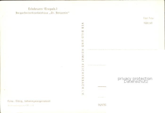 72460153 Erlabrunn Erzgebirge Bergarbeiter Krankenhaus Dr Benjamin postalisch nicht gelaufen Erhaltung siehe scans KatCode: 11110014191090