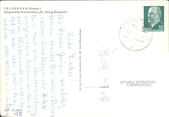 72329992 alte Postkarte Erlabrunn Erzgebirge Bergarbeiter-Krankenhaus Dr. Georg Benjamin postalisch gelaufen Erhaltung siehe scans KatCode: 11110014191090