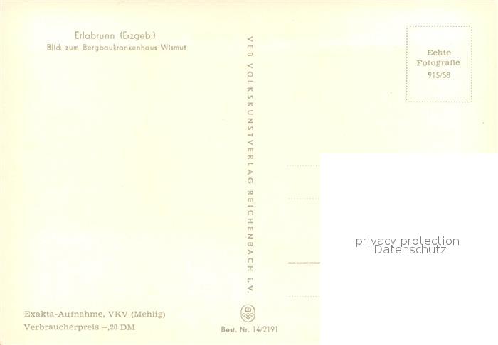72963813 Erlabrunn Erzgebirge Blick zum Bergbaukrankenhaus Wismut postalisch nicht gelaufen Erhaltung siehe scans [FriedD77] KatCode: 11110014191090