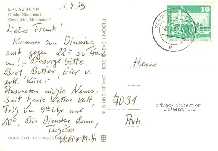 73741151 alte Postkarte Erlabrunn Erzgebirge Gaststaette Steinheidel postalisch gelaufen Erhaltung siehe scans [LiesaD40] KatCode: 11110014191090