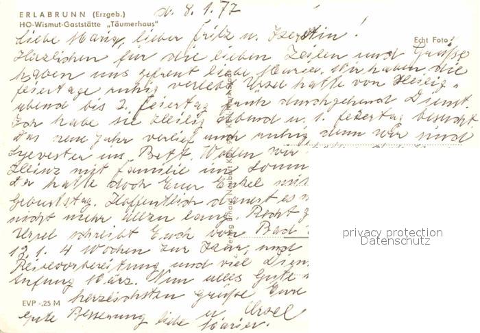 72634309 Erlabrunn Erzgebirge Gaststaette Taeumerhaus postalisch nicht gelaufen Erhaltung siehe scans [AndreD76] KatCode: 11110014191090