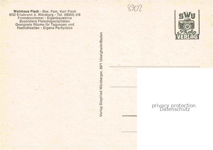 74054919 Erlabrunn Unterfranken Wuerzburg Bayern Weinhaus Flach Gastraum postalisch nicht gelaufen Erhaltung siehe scans [WerneD78] KatCode: 11110009679128